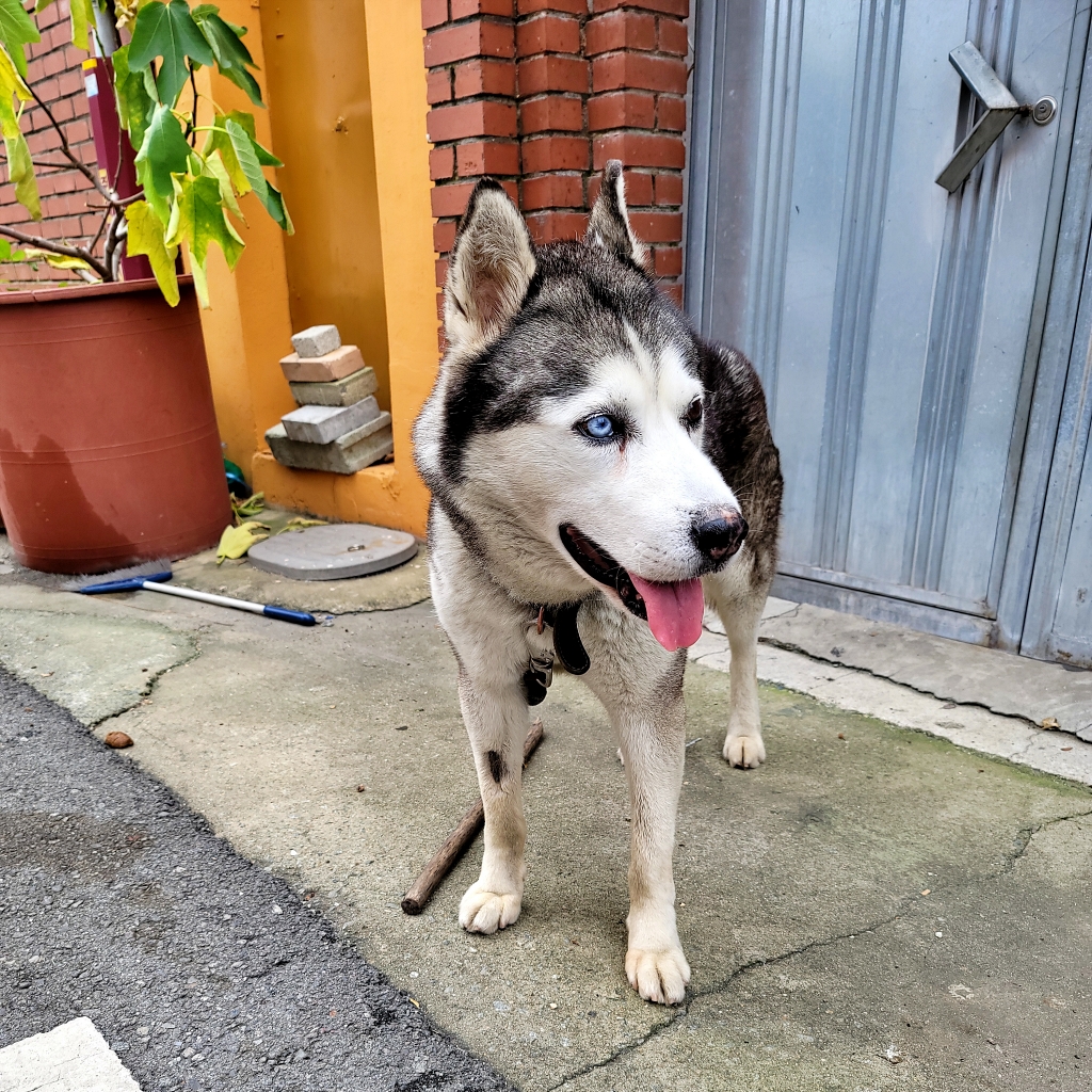 노트20 카메라만의 장점은 아니죠. 이전 버전에서도 기능이 있었으니까요. 일단 펜을 꺼내 활성 버튼을 꾸~욱 눌러주면 카메라가 활성화되고, 한 번 누르면 사진이 촬영됩니다. 옆집 파란 눈의 개인데 오늘은 차분이 저를 반기네요. 몇 번 봤다고 경계심을 푸는 것 같습니다.