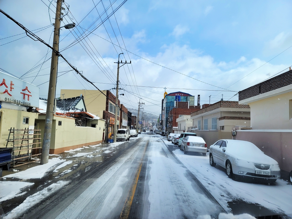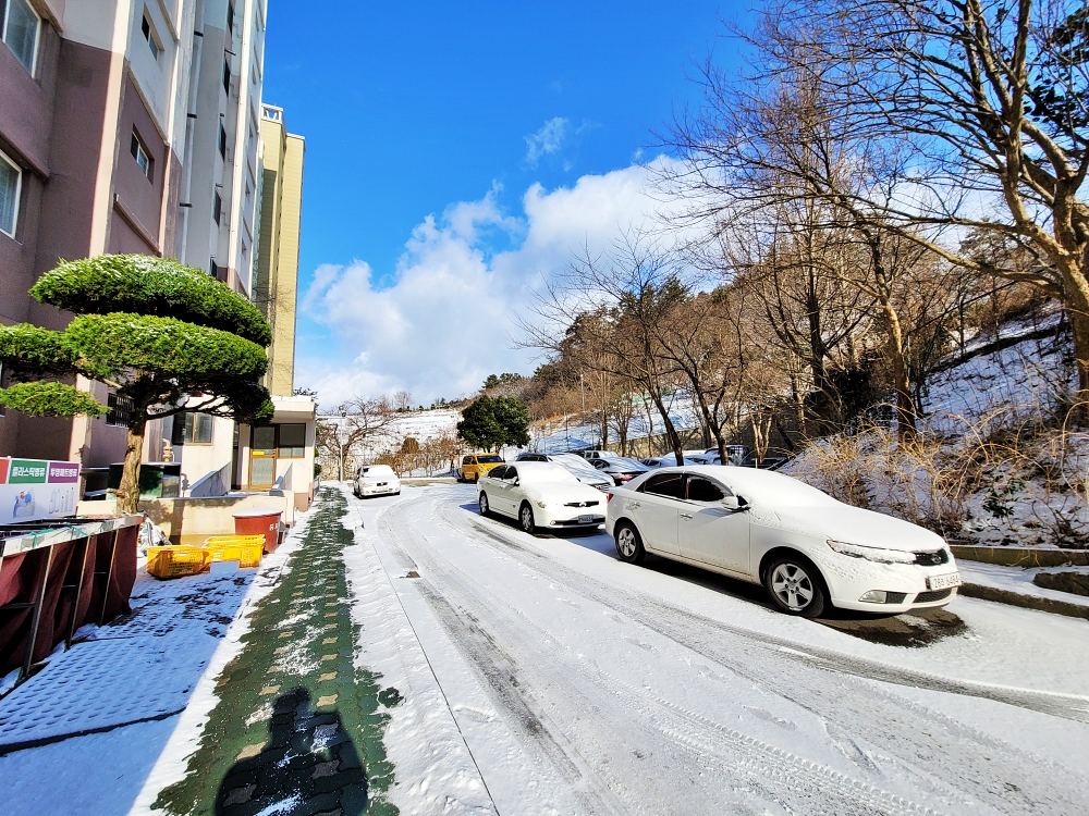 눈이 온 풍경을 찍을 때는 스텝을 높여 밝게 찍어야 합니다. 기존 자동노출을 주고 찍으면 사진이 어둡게 나옵니다.