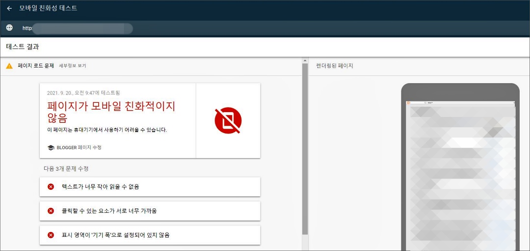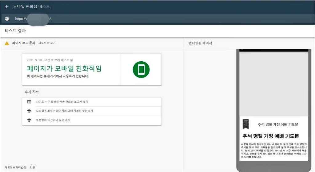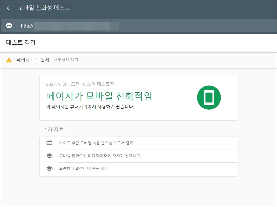 페이지가 모바일친화적임이라고 나오면 설정된 것임