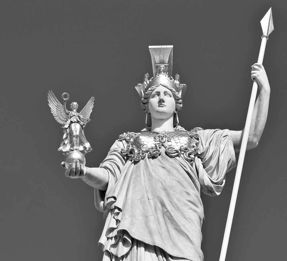 공예의 여신 아테나는 인간에게 필요한 다양한 제도를 만든다. 그중의 하나가 재판이다. 전쟁의 신 아레스가 자신의 딸을 겁탈하려는 포세이돈의 아들을 죽인다. 그러자 아레스와 포세이도 사이에 전쟁이 일어난다. 이때 아테나는 아레이오스 파고스, 즉 '아레스의 언덕'에서 재판을 연다. 결국 아레스는 정당방위로 무죄를 선고받는다. 그리스에서는 대법원을 아직도 아레오 파고스라 부른다.