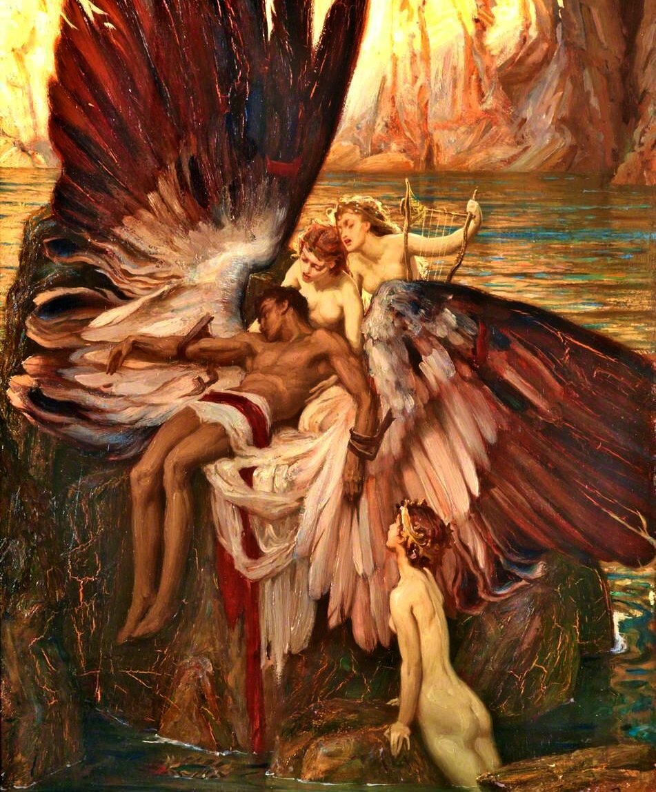 아버지 다이달로스는 이카로스가 자신을 따라오지 않은 것을 발견하고 애타게 불렀다.