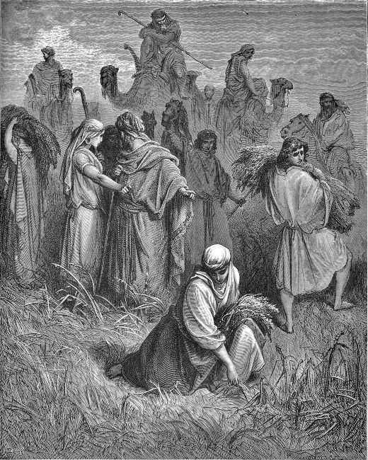 나오미의 남편 엘리멜렉에게 친척인 보아스가 있었다. 룻이 나오미에게 자기가 밭으로 가서 이삭을 죽겠다고 한다. 이삭을 줍다가 마침 보아스의 밭에 이르게 된다. 미침 보아스가 추수를 하는 종들에게 찾아다 와서 그들에게 하나님의 축복을 전한다. 종들도 보아스에게 축복의 말을 건넨다. 보아스가 룻을 발견하고 종들에게 저 여자가 누구냐고 묻는다. 종들은 모압에서 온 나오미의 며느리라고 얘기를 한다. 아침부터 지금까지 쉬지 않고 계속해서 이삭을 줍고 있다라고 칭찬한다. 보아스는 나오미에게 인사를 건네고 내가 어떤 사랑을 베풀어 있는지 들어서 알고 있다라고 얘기한다. 롯은 보아스의 얘기를 듣고 자기도 감사한 말을 전한다. 보아스는 룻에게 식사를 주고 종들에게는 건들지 말고 일부러 곡식을 조금씩 떨어뜨려 놓으라고 말합니다. 롯은 보리 한 에바를 주워 집으로 돌아간다. 나오미는 너무 많이 주워 와서 깜짝 놀라고 보아스 때문인 것을 듣고 감사한다.