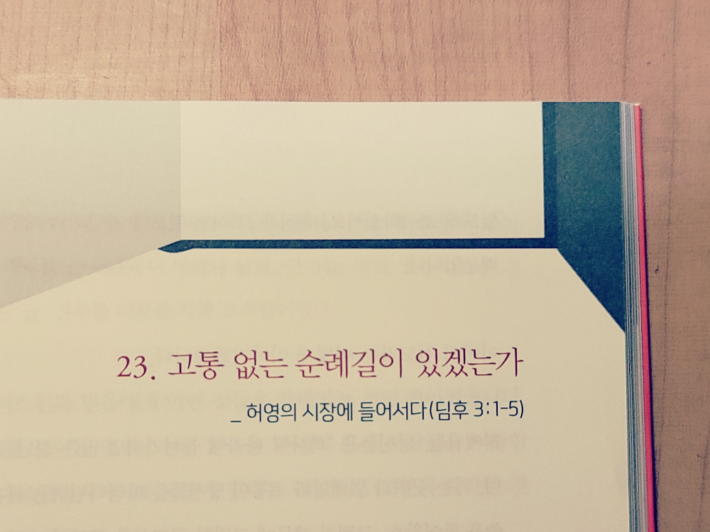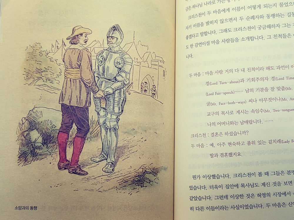 그랬습니다. 두 번째 책은 무엇을 골라야 할까요? 아무리 생각해도 저의 기억 속에 자리 잡고 있는 책이 없었습니다. 그 질문을 받고 집으로 돌아가 며칠을 생각했습니다. 지금까지 읽었던 책을 추려보았습니다. 스무 살 때부터 책을 읽기 시작했습니다. 그 이전엔 책을 거의 읽지 못했습니다. 대학교 다닐 때, 신대원 다닐 때, 그리고 그 이후의 삶을 추적하면서 기억에 남았던 책을 추려 내기 시작했습니다. 수천 권의 책 중에 ‘딱 한 권’이 나왔습니다. 그때도 아직도 여전히 명불허전인 바로 그 책, 바로 존 번연의 『천로역정』이였습니다.