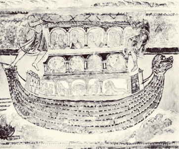 지우수드라는 신의 명령을 따라 배를 만들고, 가족과 동물들을 태웁니다.
