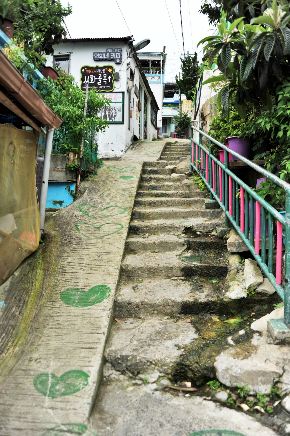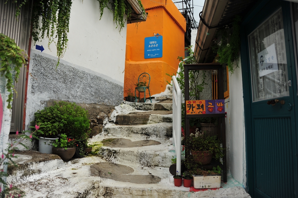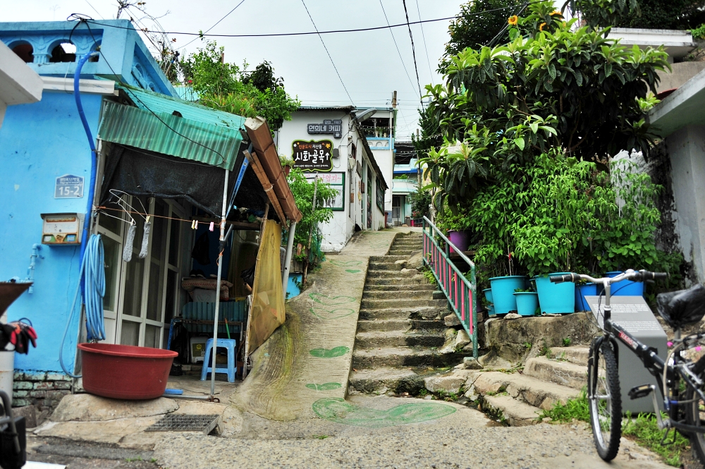 서산동은 목포의 소문난 달동네다. 목포에서 달동네는 낯설다. 대부분 주택이 평지에 자리하고 있어서다. 하지만 목포의 구도심은 유달산을 중심으로 가파른 경사를 가진 산등성에 주택이 옹기종기 모여 있다. 대부분 차가 진입할 수 없는 좁은 골목길 탓에 빈집이 하염없이 늘어나고 있다. 불행인지 다행인지 그 덕분에 목포는 일제강점기 이후 그다지 큰 성장과 변화를 이루지 못했고, 당시의 건물이 천지다. 대표적인 곳이 서산동과 온금동이다. 북교동은 그나마 차가 다닐만한 길이 많고 그럭저럭 출입이 가능하다. 하지만 서산동과 온금동은 전혀 그렇지 않다. 차는 차치하고 오토바이조차 진입이 불가능한 곳이 대부분이다. 두 사람이 비켜가지 못할 골목도 적지 않다. 부산에 태극도 마을 목포의 서산동 시화골목은 견줄만하다.