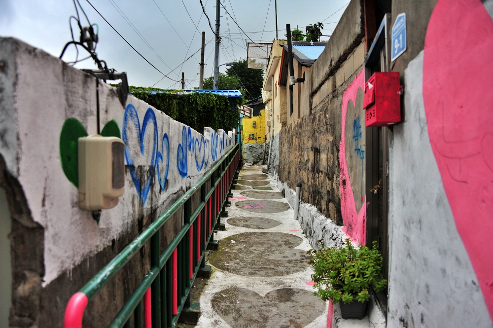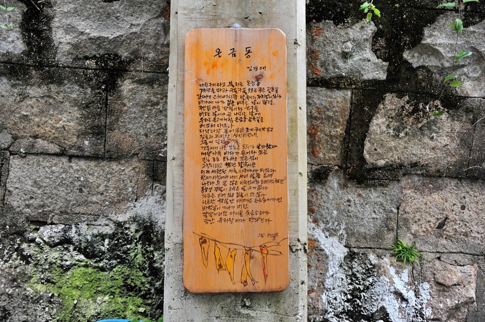 서산동은 목포의 소문난 달동네다. 목포에서 달동네는 낯설다. 대부분 주택이 평지에 자리하고 있어서다. 하지만 목포의 구도심은 유달산을 중심으로 가파른 경사를 가진 산등성에 주택이 옹기종기 모여 있다. 대부분 차가 진입할 수 없는 좁은 골목길 탓에 빈집이 하염없이 늘어나고 있다. 불행인지 다행인지 그 덕분에 목포는 일제강점기 이후 그다지 큰 성장과 변화를 이루지 못했고, 당시의 건물이 천지다. 대표적인 곳이 서산동과 온금동이다. 북교동은 그나마 차가 다닐만한 길이 많고 그럭저럭 출입이 가능하다. 하지만 서산동과 온금동은 전혀 그렇지 않다. 차는 차치하고 오토바이조차 진입이 불가능한 곳이 대부분이다. 두 사람이 비켜가지 못할 골목도 적지 않다. 부산에 태극도 마을 목포의 서산동 시화골목은 견줄만하다.
