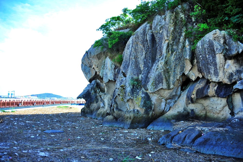나를 반긴 기암절벽은 오랜 세월을 버터온 곰보 할머니 얼굴 같고, 등굽은 시골 어른 같았다. 타포니(tafoni)가 가득한 바위는 길어야 30분도 채 되지 않는 구경 시간으로 제대로 해석할 수 없는 세월의 오묘함을 품고 있었다. 손에 닿으면 금방이라도 부서질 듯 약해 보인 바위는 이곳이 석회암 바위로 구성된 목포임을 말한다. 갓바위로 아래로 홍수로 떠밀려온 온갖 쓰레기가 운집해 있다.