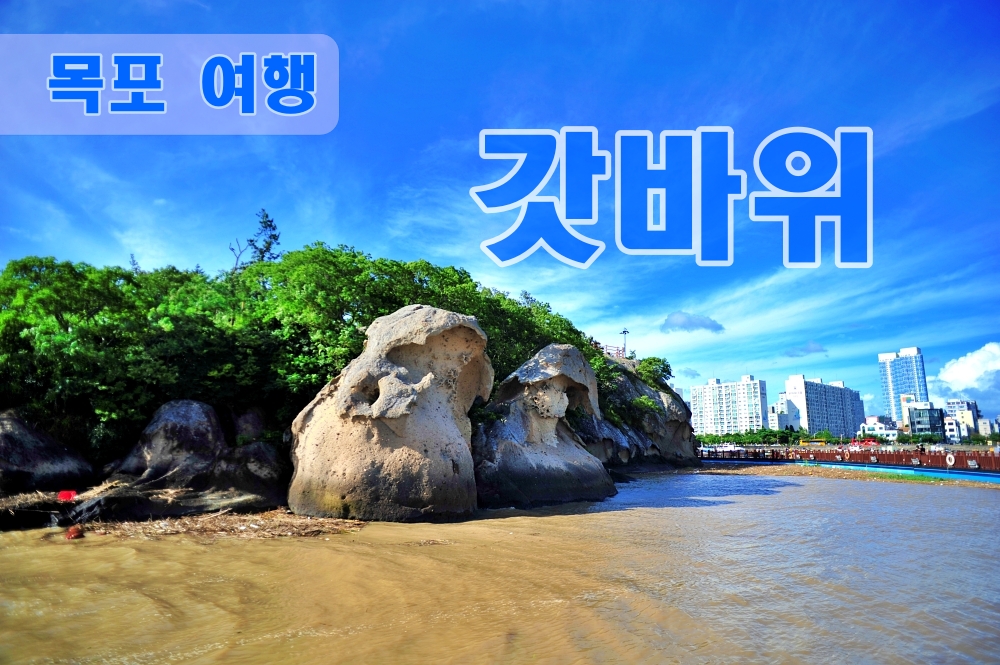 갓바위는 두 개로 이루어져 있으며, 크기는 큰 것이 8m이고 작은 것이 6m 정도이다. 목포8경의 하나이며, 2008년 4월에 영산강변을 따라 해상보행교가 설치되어 있어 바다 위에서도 감상할 수 있다. 물위에 떠 있는 보행교는 298m 구간에 설치되어 있으며, 밀물 때 약 1m 정도 올라왔다가 썰물 때에는 바닷물을 따라 내려간다.