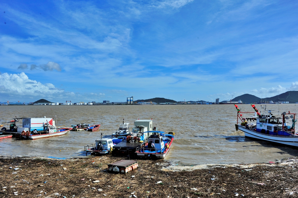 달맞이 공원과 맛닿은 영산호 주변은 수많은 쓰레기로 몸살을 앓고 있었다. 아마도 홍수로 인해 떠밀려온 쓰레기들과 나무가지 등이 움푹한 갓바위 근처로 밀려 들어와 섬을 이루고 있었다.