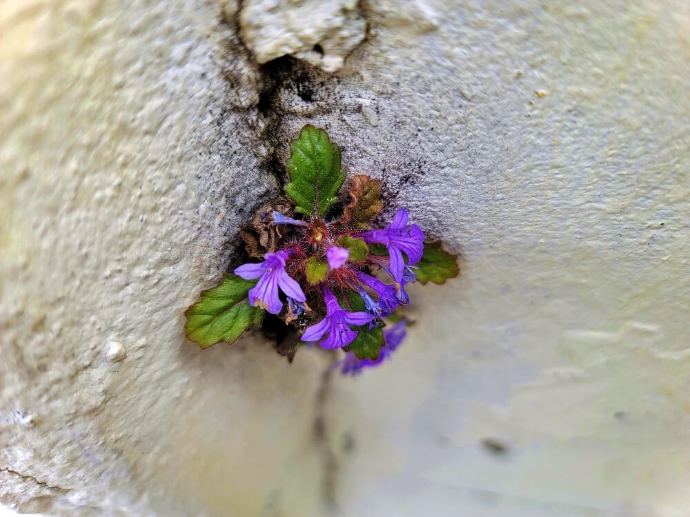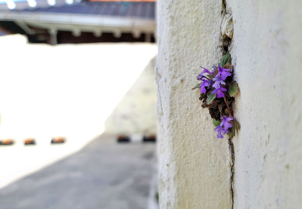 주차장에 차를 세우고 교회로 들어가려는 순간 주차장 담벼락에 보라색 꽃을 발견했다. 작디작은 꽃이 벽에 달라붙어 아슬하게 지탱하고 있다. 가까이 가니 금창초 꽃이다. 손톱보다 더 작은 꽃이다. 유심히 보지 않으면 보이지 않는 작은 꽃. 왜 지금껏 한 번도 보지 못했을까? 날마다 이곳을 들르는데.. 나도 참 무심하다.