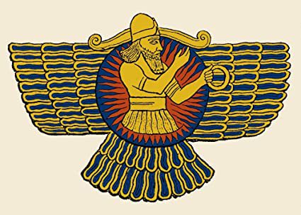 자, 다시 메소포타미아 문명으로 돌아가 보자. 아후라 마즈다는 조로아스터교에서 숭배하는 태양신이다. 주님이란 뜻이다. 그는 창조되지 않는 최고의 신이다. 하늘의 신이며, 정의와 공의를 실현한다. 불을 숭배하는 조로아스터교는 왜 아후라 마즈다를 주신으로 섬기는 것일까? 이곳에서 유의해야할 부분은 그가 펼친 날개를 가지고 있다는 것과 중앙에 원이 있다는 것이다. 원은 태양이며, 태양 주위로 날개가 펼쳐져 있다. 이것은 단순히 신성만을 의미하는 것이 아니다.