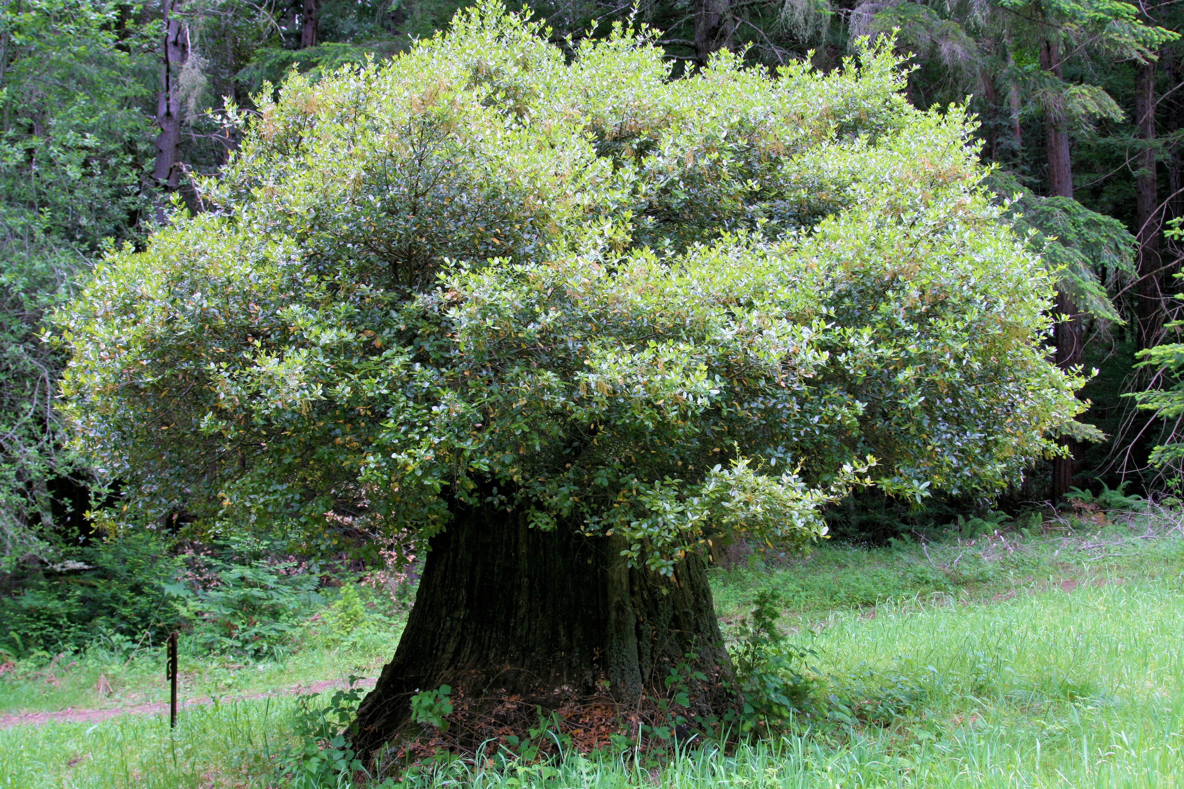 [잘린 상수리나무에서 무성하게 자란 새싹들. 상수리나무는 뿌리가 죽지 않는 이상 다시 살아나는 재생능력이 탁월하다.]