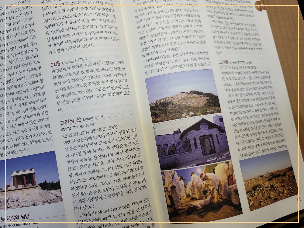 이번에 구입한 홍순화의 성경지명사전입니다. 앞에 GPS가 있어 무슨 뜻인가 했더니 책을 펼쳐보니 위도와 경도가 표시되어 있습니다. 재밌네요... 저자인 홍순화 목사는 한국성서지리연구원장이며 주심교회를 섬기고있습니다. 나름 성경지리에 박식한 분입니다. 책은 도시 이름과 히브리어, 간략한 설명이 추가되어 있습니다. 위치가 정확히 파악된 된 곳은 위도경도를 숫자로 표기했습니다. 성경지명 사전은 이번이 처음입니다. 다른 책과 비교할 수 없지만 나름 괜찮아 보입니다. 곁에 두고 자주 사용해야할 책이기에 값이 나가지만 구입했습니다.