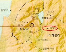 일명 거라사. 갈릴리 해 도남 6마일 지점 1,200피트 산상에 있는 마을.