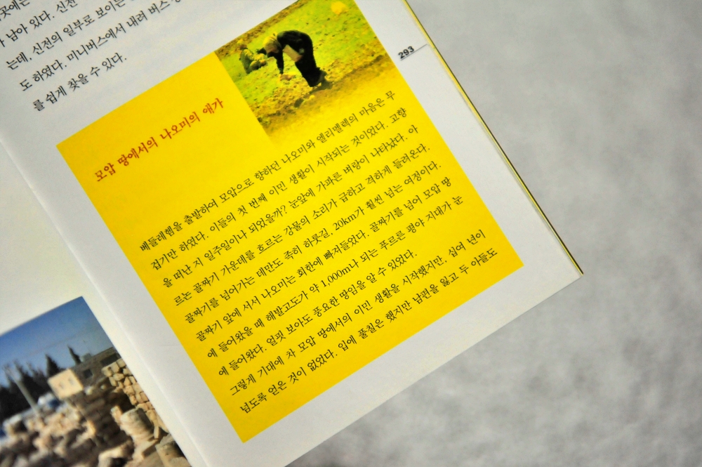 이 책이 출판된 해는 2008년이다. 벌써 13년이란 짧지 않은 시간이 흘렀다. 한편으론 다행스럽고, 한편으로 안타까움이 가득하다. 이렇게 좋은 책이 절판이라니... 안타까움을 뒤로하고 이 책에 대해 간략히 설명해 보자. 먼저 이 책은 많은 사진이 있다. 올컬러판이다. 그런데 가격은 고작 25,000원이다. 가격을 40,000원까지 올려도 충분히 가치 있는 책이다. 사진과 더불어 성경 속의 흥미로운 사건들이 소개된다. 성경 속의 사건 뿐 아니라 현재의 상황을 충분히 고려하여 소개한다는 점에서 과거와 현재가 맞닿아 있다. 비록 매우 간략하긴 하지만 서두에서 요르단 지역의 역사를 살펴주어 많은 도움이 되었다.