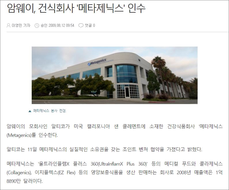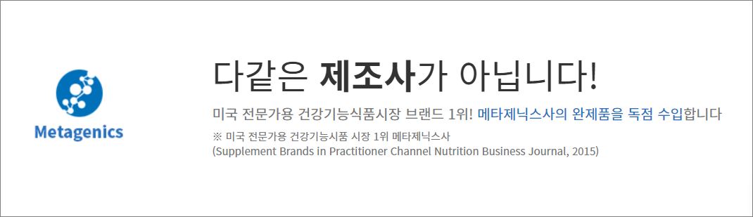 메타제닉스(Metagenics)는 미국 캘리포니아 샌 클레멘트에 소재하며 암웨이가 2009년에 인수한 건강식품회사입니다. 유산균 제조의 3대 회사에 들어가면 가장 잘 알려진 회사이기도 합니다.