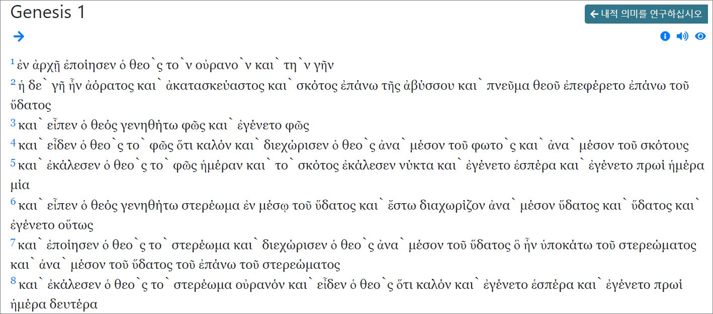 헬라어는 GNT와 SBL 두 가지를 볼 수 있습니다.