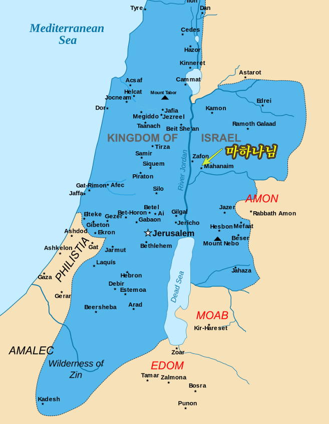 두 진영이란 뜻이다. 갈릴리와 사해 중간 지점에 위치한다.