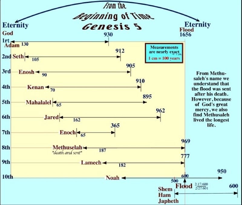 왜 이 부분이 중요할까요? 6장부터 시작되는 노아의 홍수는 노아의 가족 8명 외에 아무도 살지 않고 다 죽었기 때문입니다. 즉 셈의 후손들도 모두 죽임을 당했고, 그들 또한 악한 자들이라는 것을 성경은 분명히 보여주고 있습니다. 즉 5장의 족보는 단지 빛의 족보와 어둠의 족보의 대결이라는 말도 안 되는 억지 해석으로 신비로운 뭔가를 추구하려는 것이 얼마나 어리석은가를 잘 보여주고 있는 것이다.